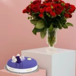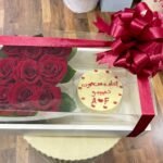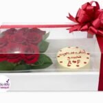احتفال مميز – باقة ورد مع كيكة في إطار أكريليك