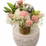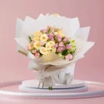 باقة أكاليل الورد – باقة ورد طبيعي وردي مع أقحوان أبيض