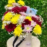 لأن بعض اللحظات تستحق أن تُخلّد، صممنا لك فازة تجمع بين رقة زهور “الليلي” والروز الوردي، مع تشكيلة مختارة من