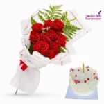 باقة عيد ميلاد متكاملة مع ورد الجوري الاحمر
