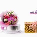 أناقة نقية – باقة جبسوفيليا بيضاء مع شوكولاتة أنوش فاخرة