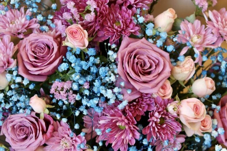 في باقة بنفسج نقدّم لك تنسيقات فاخرة تجمع بين الورد الطبيعي الطازج والتغليف الأنيق والتفاصيل التي تصنع الفرق، لتصل هديتك كما تتمنى تمامًا.