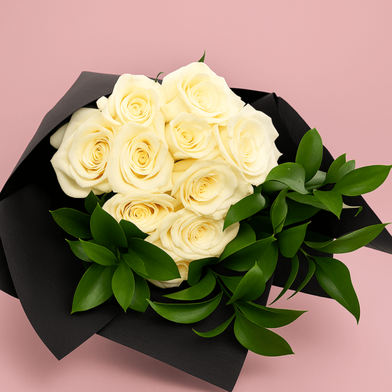 باقة أناقة بيضاء – بوكيه ورد أبيض ناعم لهدية مميزة