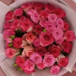 باقة الحب الأبدي – باقة ورد طبيعي مع ورد وردي وأقحوان أبيض