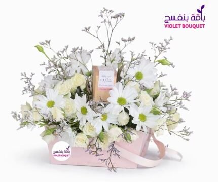 استمتعي بالرقة والجمال مع باقة بيبي روز البيضاء والوردية المميزة. تأتي الباقة في سلة وردية أنيقة، مصحوبة بشوكولاتة باستاني بالحليب اللذيذة. هدية مثالية تعبر عن الحب والعطاء.  ملاحظة: في حال عدم توفر أحد العناصر المكونة للباقة، سيتم استبدال العنصر بنوع مقارب بما يتناسب مع الشكل النهائي و المبلغ المدفوع.