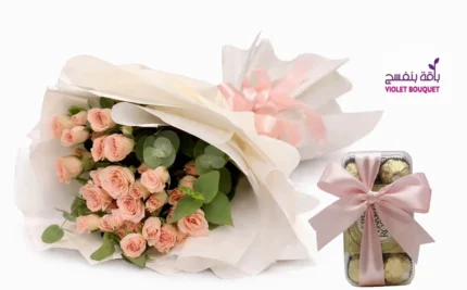 ابتسامة مشرقة باقة ورد مع شوكولاتة باتشي او فيريرو
