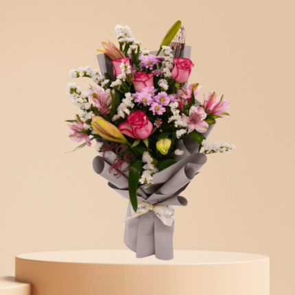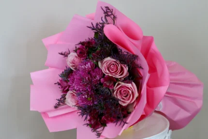 باقة الحب الأبدي – باقة ورد طبيعي مع ورد وردي وأقحوان أبيض