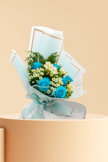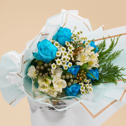 الورد الأزرق والأبيض – باقة ورد فخمة وأنيقة لهدية ساحرة