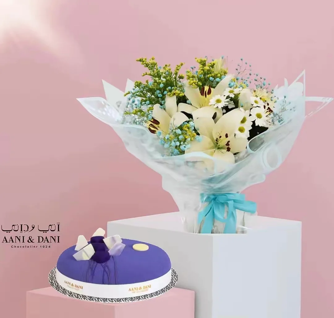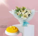 احتضن الأناقة الأبدية مع هذه الباقة الخلابة. زنابق الدار البيضاء البيضاء البكر المعروفة بعطرها الجذاب وجمالها الرشيق، يتم ترتيبها ببراعة لإنشاء قطعة مركزية راقية. هذه الهدية الرائعة مثالية لأي مناسبة تتطلب لمسة من السحر الراقي.