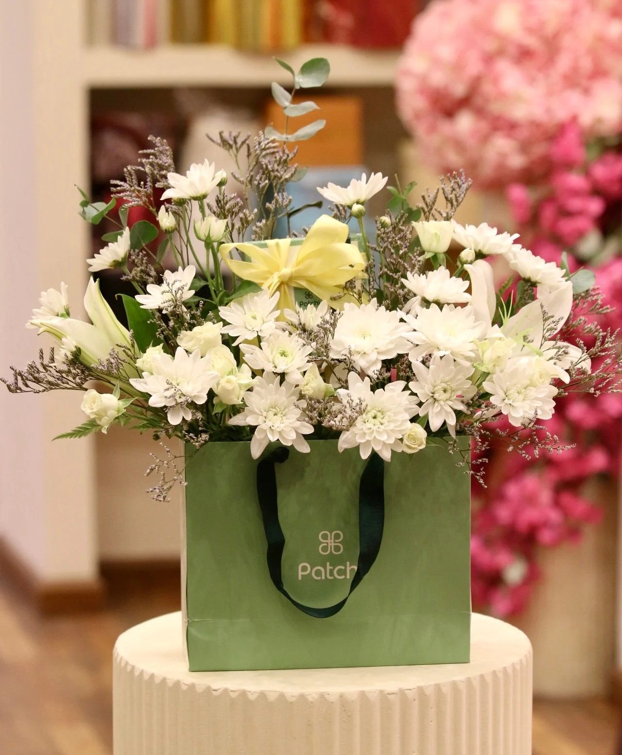صُممت هذه الباقة الرائعة بعناية فائقة، لتجمع بين سحر الزهور البيضاء النضرة والخضرة الهادئة، كل ذلك المتميز. سواء كانت لمناسبة خاصة، للتعبير عن الشكر، أو ببساطة لإضفاء البهجة على يوم أحبائك، فإن هذه الباقة هي الخيار الأمثل