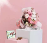 باقة ورود بيبي وردية مع شوكلاتة أنوش كراميل