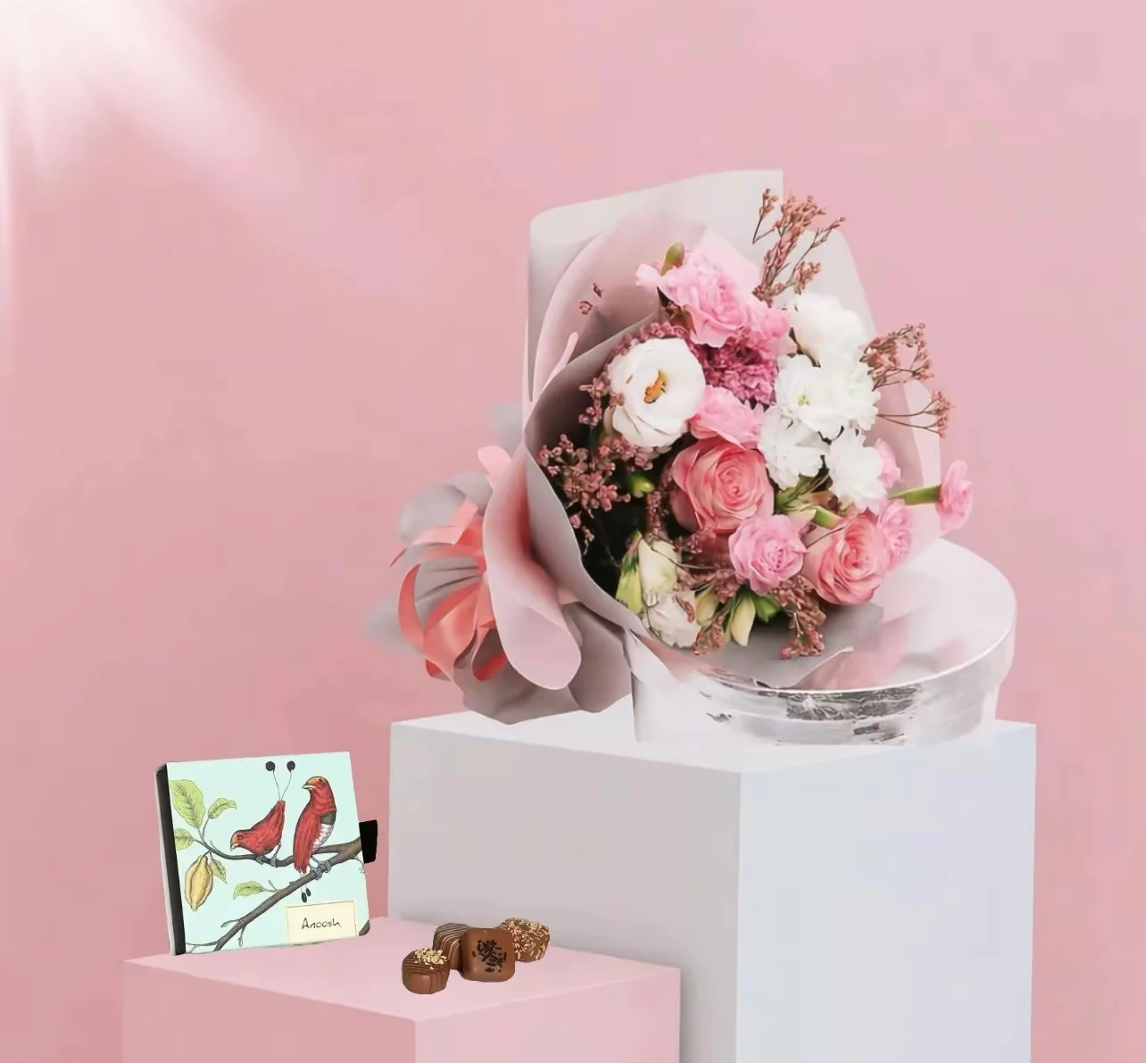 • هدية متكاملة (ورد + وشوكلاتة ).