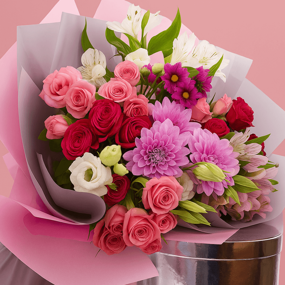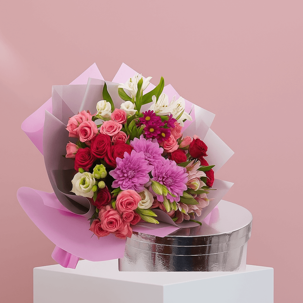 تُعد باقة الرومانسية الخيار المثالي عندما تعجز الكلمات عن وصف مشاعرك؛ فهي تجمع بين الفخامة والعاطفة في تصميم واحد يخطف الأنظار.