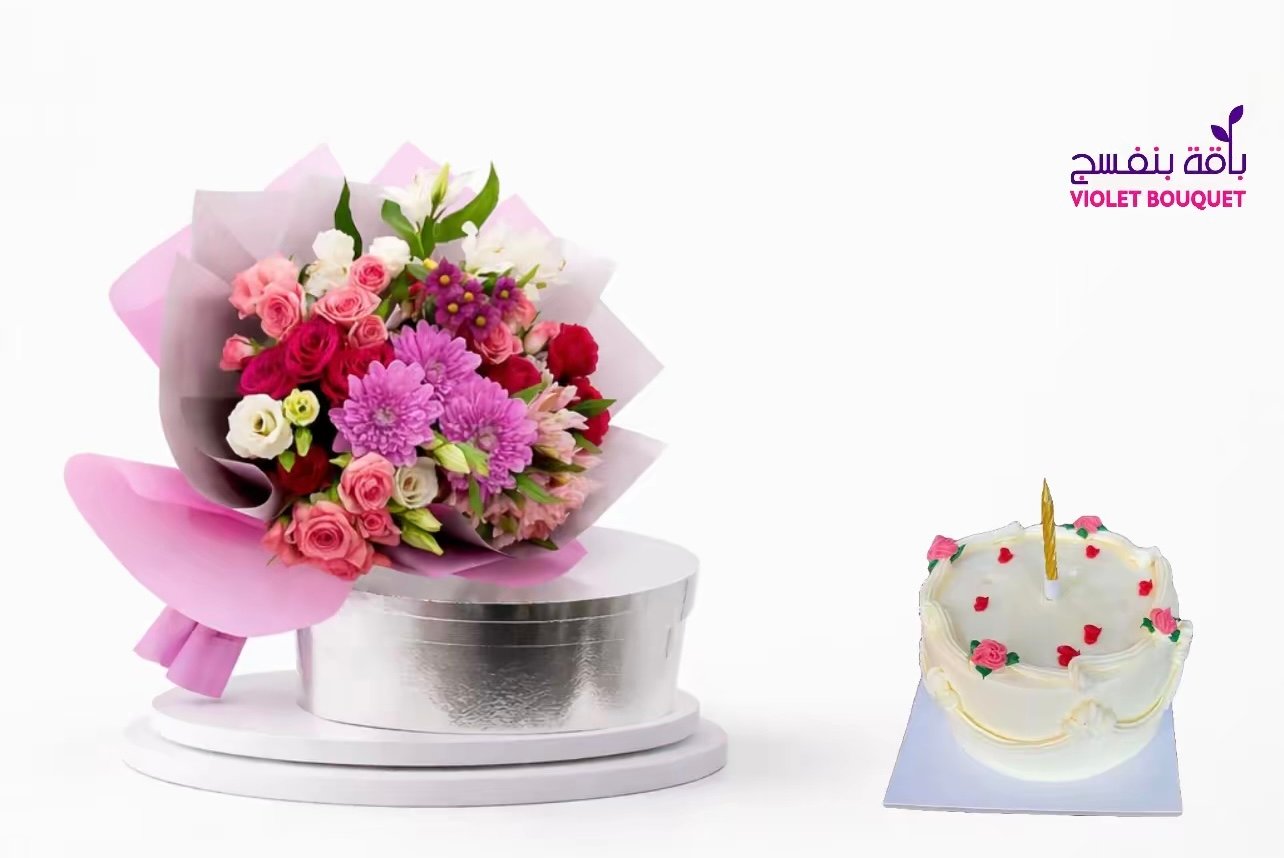 باقة الرومنسية مع كيكة أني داني كيكة صغيرة