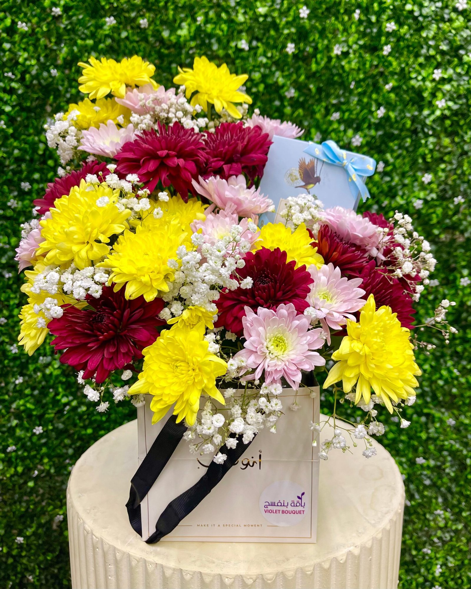 باقة ألوان الربيع مع شوكلاتة أنوش