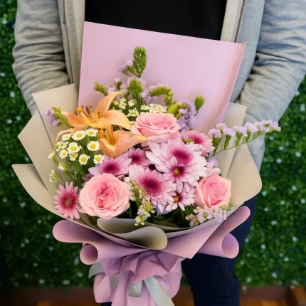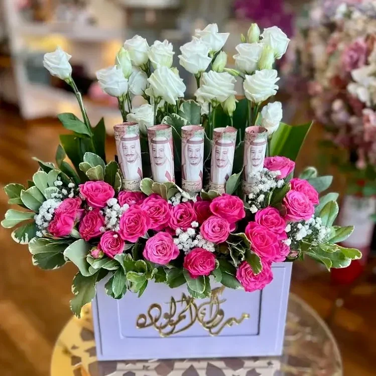 احتفلوا بقدوم المولود الجديد بهدية تجمع بين الأناقة والبهجة. باقة “فرحة المولود” هي الخيار الأمثل لتهنئة الأهل، بتصميمها الذي يمزج بين الورود الزهرية الناعمة والأوراق الخضراء المنعشة، مع لمسة فريدة من المال المنسق بشكل فني.