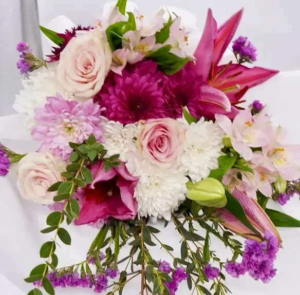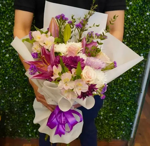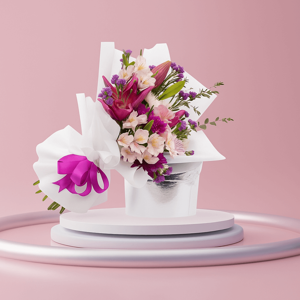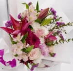 باقة تناغم ساحر – زنابق أرجوانية وورود وردية