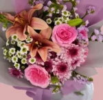 باقة الحب الأبدي – باقة ورد طبيعي مع ورد وردي وأقحوان أبيض