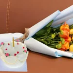 باقة شمس وهدوء – باقة ورد أصفر وبرتقالي نابضة بالحياة مع كيكة اروى صغيرة