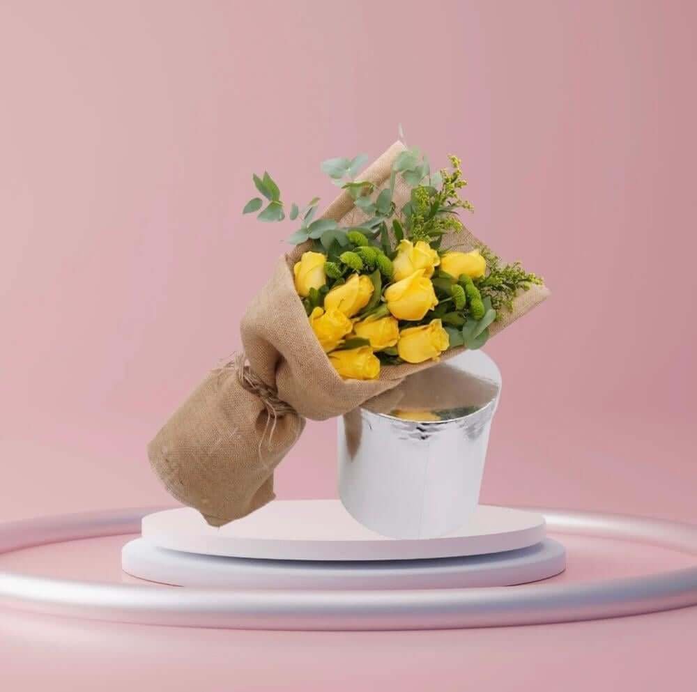 باقة شمس وهدوء – بوكيه ورد أصفر زاهي