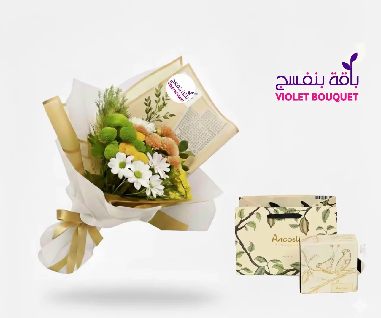 ملاحظة: في حال عدم توفر أحد العناصر المكونة للباقة، سيتم استبدال العنصر بنوع مقارب بما يتناسب مع الشكل النهائي و المبلغ المدفوع.