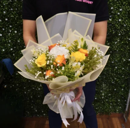باقة صن شاين (Sunshine) هي تنسيق زهري حيوي يجمع بين ألوان الشمس الدافئة، وتعتبر خياراً مثالياً لنشر البهجة والطاقة الإيجابية.
