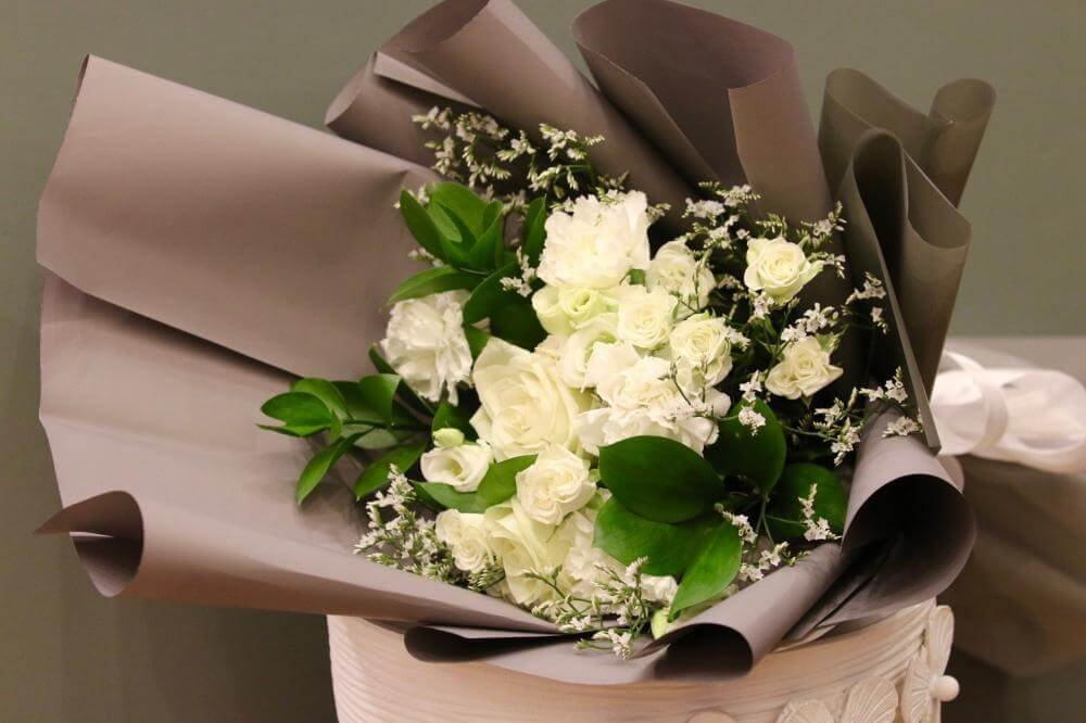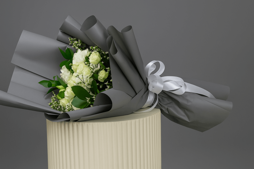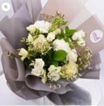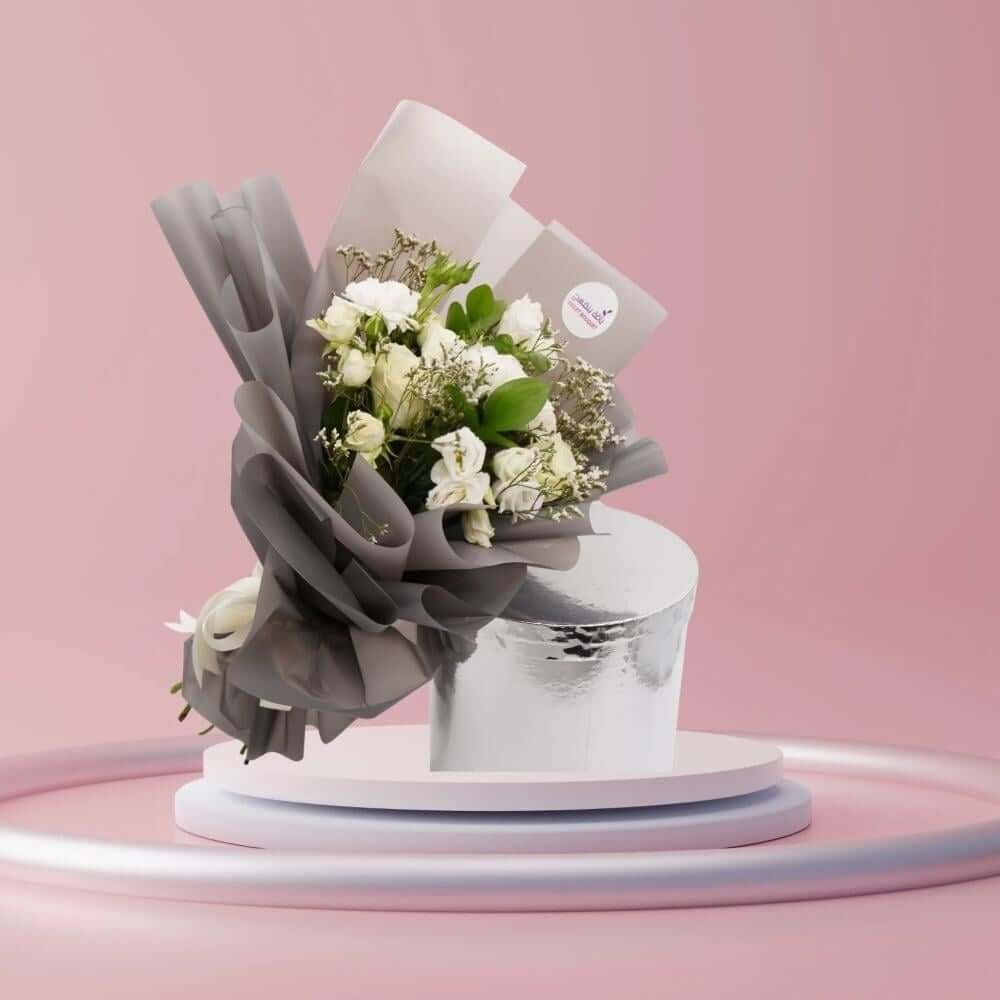باقة “ضوء القمر” هي تجسيد للأناقة الكلاسيكية والهدوء، حيث يعكس الورد الأبيض مع البراعم الناعمة لمسة من النقاء والرقي التي تناسب أرقى المناسبات.