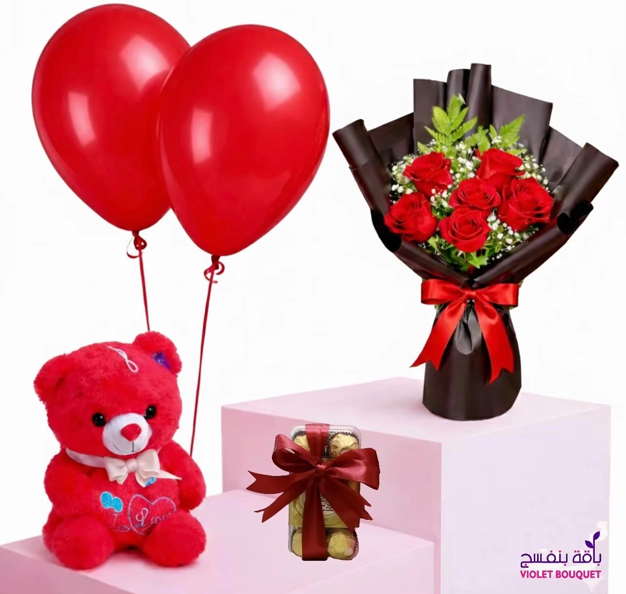 • مع شوكلاتة فيريرو روشيه ١٦ قطعة او شوكلاتة أنوش البلجيكية الفاخرة خصيصاً لتضفي لمسة حلوة على الاحتفال.