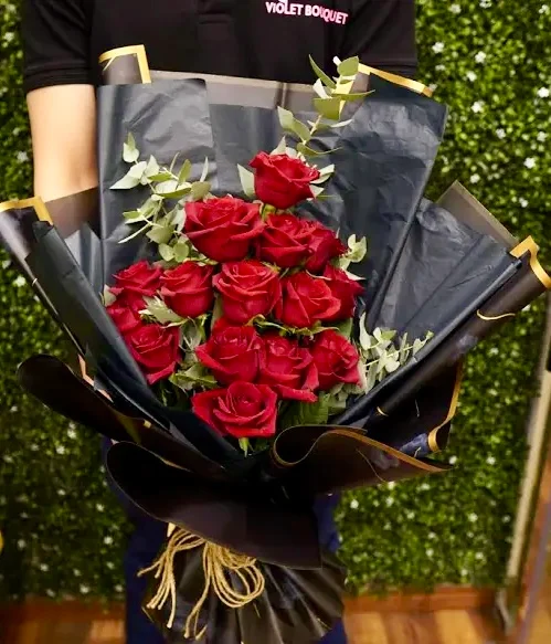 تُعتبر باقة الورد الجوري الأحمر الملكي رمزاً للفخامة والمشاعر العميقة، وتتميز عادةً بتنسيقها الضخم واستخدام أجود أنواع الورود ذات الرؤوس الكبيرة والألوان المخملية.
