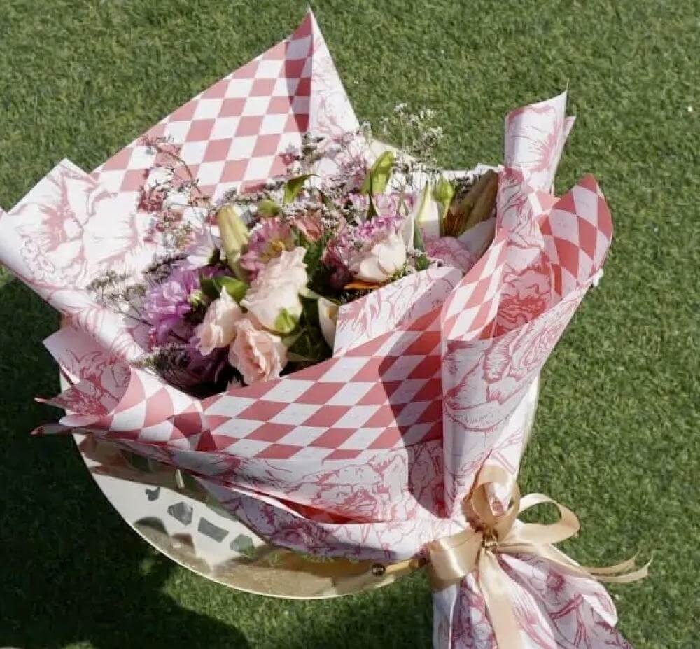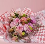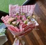 باقة ورد وردي مع أقحوان – باقة ورد طبيعي أنيقة