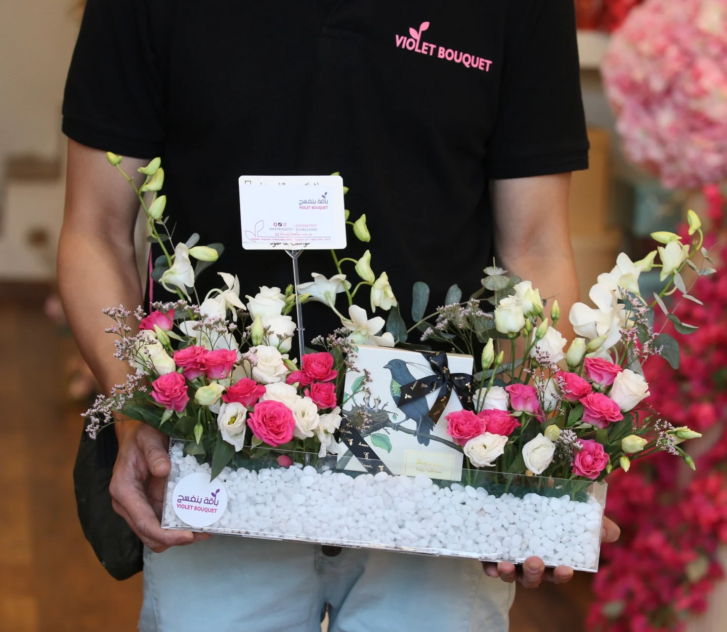 في باقة بنفسج نقدّم لك تنسيقات فاخرة تجمع بين الورد الطبيعي الطازج والتغليف الأنيق والتفاصيل التي تصنع الفرق، لتصل هديتك كما تتمنى تمامًا.