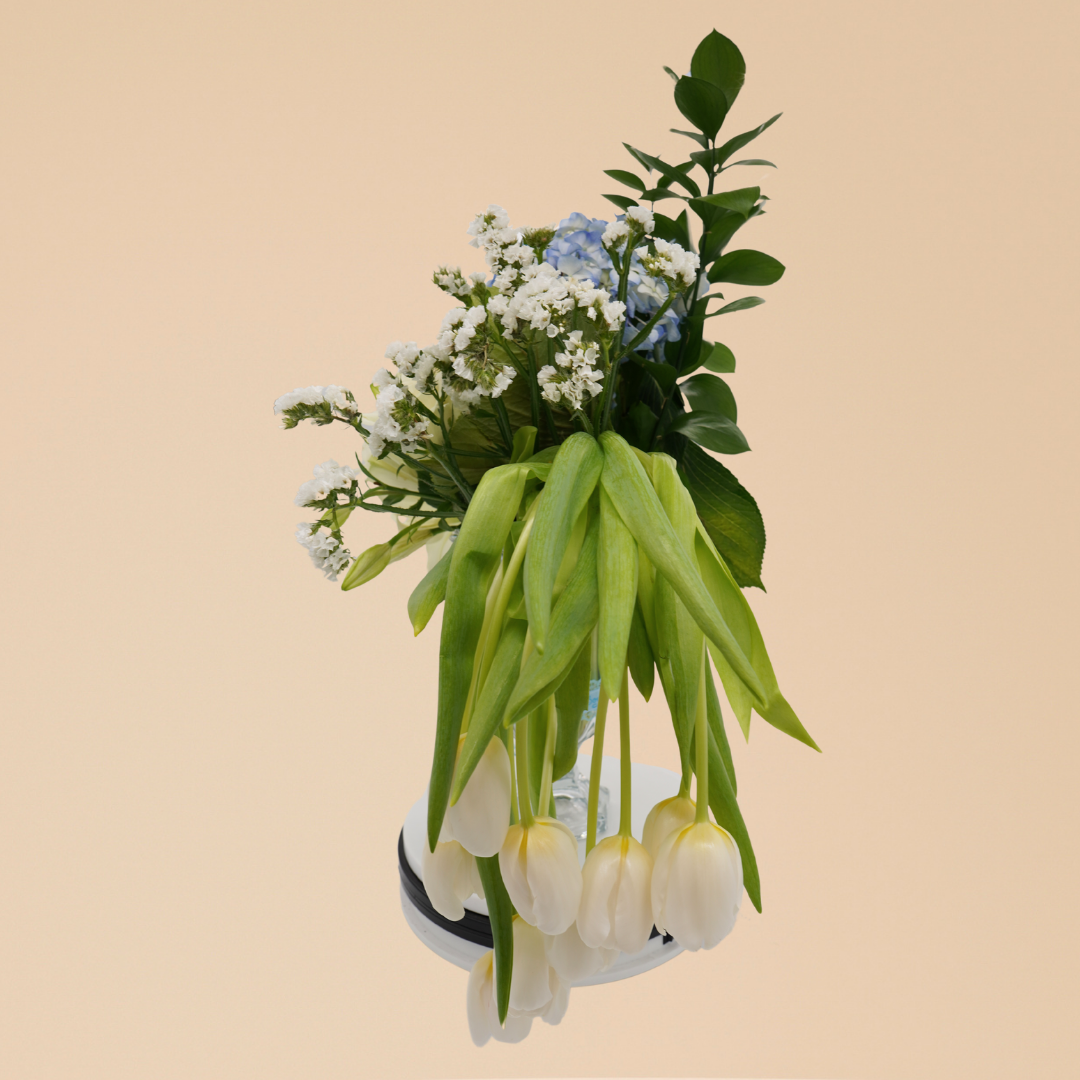 • زهور متنوعة: تحتوي على زهور التوليب، والليلي، والروز، مما يمنحها مظهرًا فخمًا وغنيًا.
