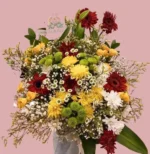ما يميز هذه الباقة؟• ألوان متناغمة: مزيج الألوان الهادئة يضفي شعورًا بالراحة والسكينة.• زهور منوعة: تحتوي على أنواع مختلفة مثل الورود، والقرنفل، وزهور الأقحوان، مما يجعلها غنية بالتفاصيل.• مناسبة لجميع المناسبات: مثالية لأعياد الميلاد، والاحتفالات، أو كهدية شكر وتقدير.اجعل يوم من تحب مميزًا، واطلب هذه الباقة الآن.