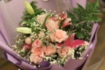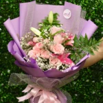 الرئيسية » المتجر » جمال وردي – باقة ورد وردي مع زنابق وأقحوان أنيقة