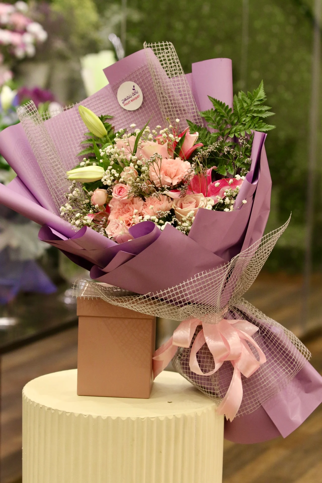 باقة تناغم ساحر – زنابق أرجوانية وورود وردية