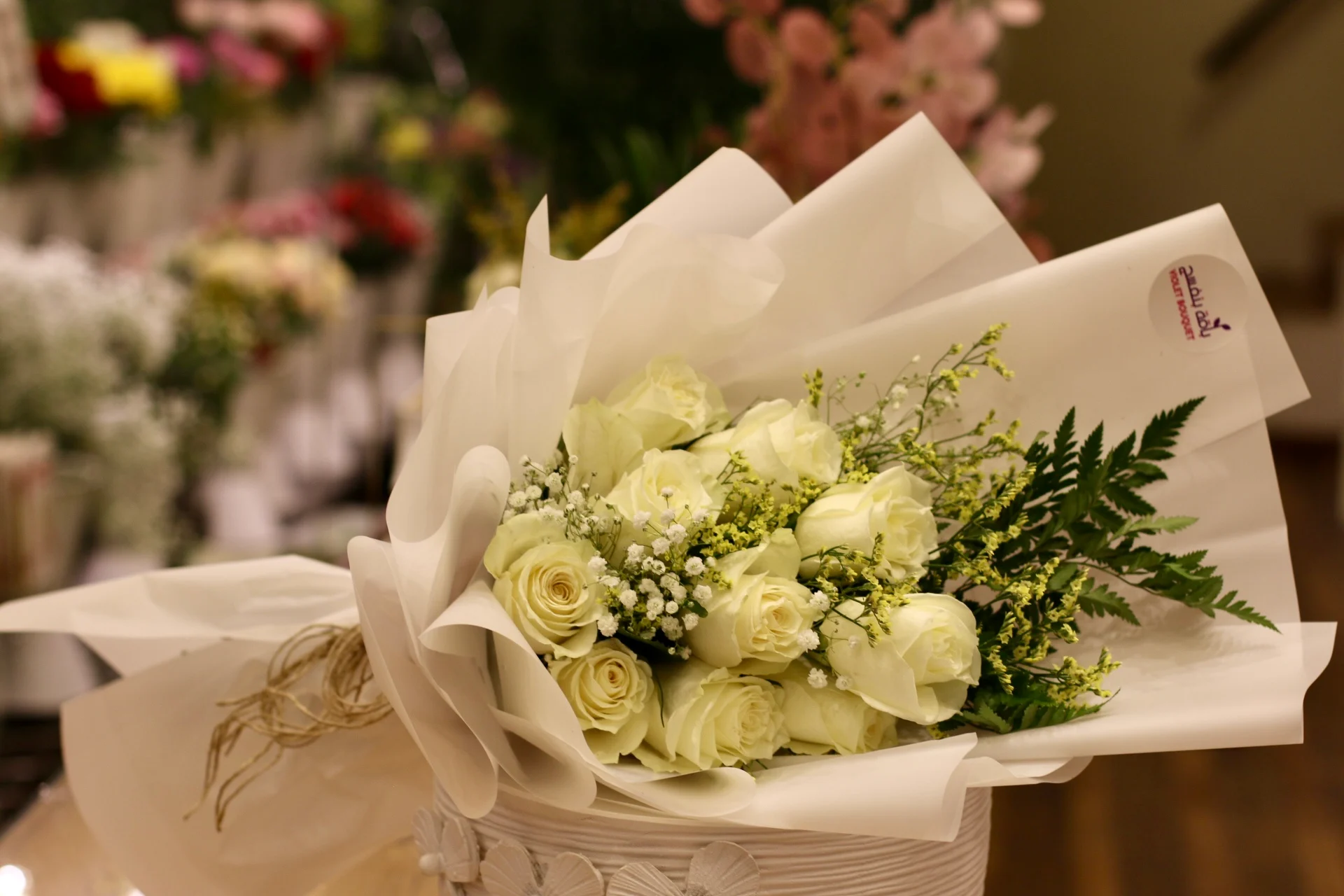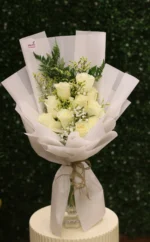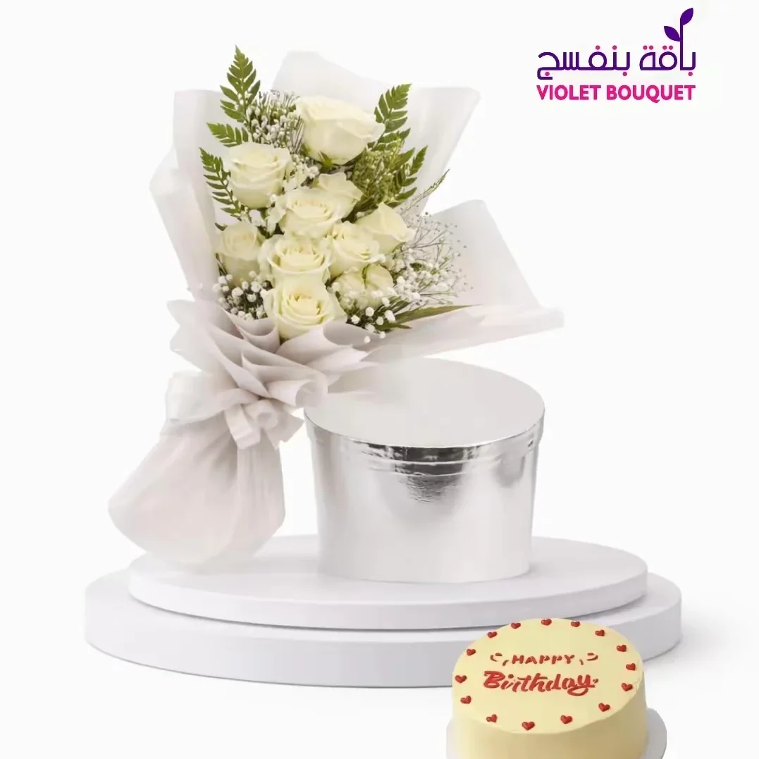 عبر عن مشاعرك بباقة ورد ابيض صغير. 10 ورود بيضاء ناصعة ترمز للنقاء والحب مثالية لأي مناسبة توصيل سريع في الدمام الخبر، والقطيف . اطلب الآن مع كيك اروى الصغيرة.