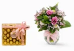 رقة وجمال باقة بيبي روز وردية مع شوكلاتة فيريرو او باتشي