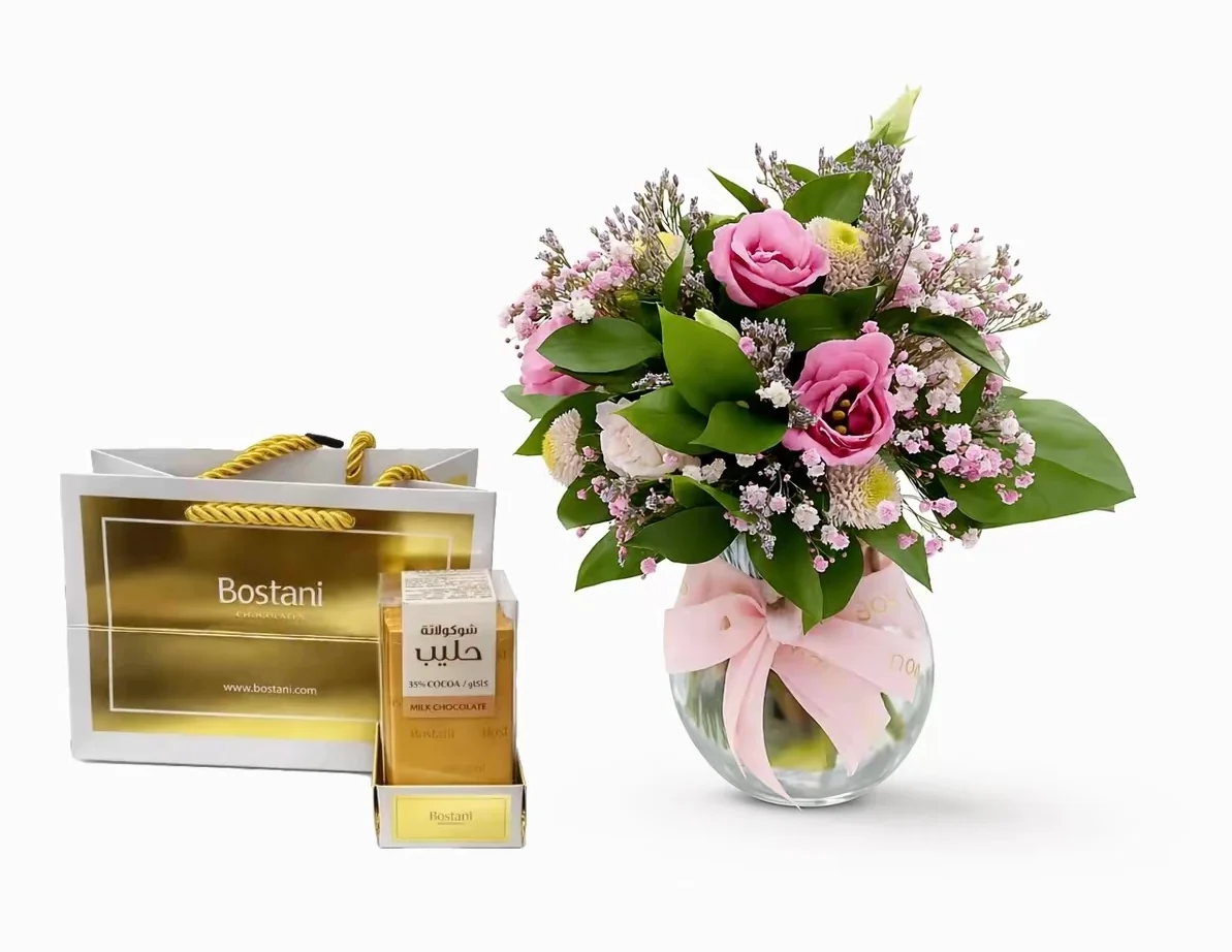 فازة ورد لتخطف الأنظار.. وقطعة شوكولاتة لتأسر القلب.”