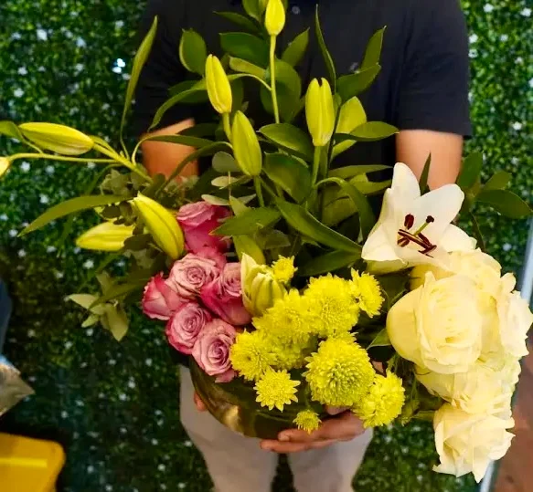 ملاحظة: في حال عدم توفر أحد العناصر المكونة للباقة، سيتم استبدال العنصر بنوع مقارب بما يتناسب مع الشكل النهائي و المبلغ المدفوع.