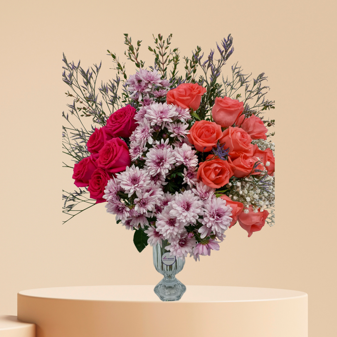 ما يميز هذه الباقة؟• ألوان متناغمة: مزيج الألوان الهادئة يضفي شعورًا بالراحة والسكينة.• زهور منوعة: تحتوي على أنواع مختلفة مثل الورود، والقرنفل، وزهور الأقحوان، مما يجعلها غنية بالتفاصيل.• مناسبة لجميع المناسبات: مثالية لأعياد الميلاد، والاحتفالات، أو كهدية شكر وتقدير.اجعل يوم من تحب مميزًا، واطلب هذه الباقة الآن.