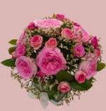 تتكون هذه الباقة من مجموعة متنوعة من الزهور الطبيعية بألوان البنفسجي، الوردي، والأبيض، مما يمنحها إطلالة حيوية وجذابة.