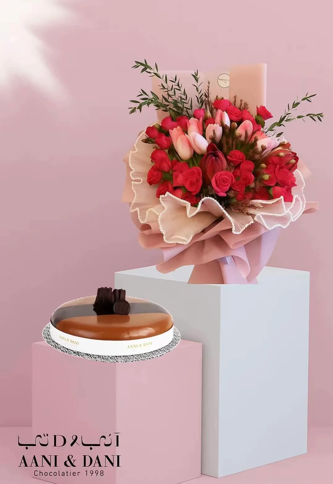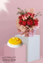 فخامة حمراء: باقة ورد وتوليب مع حلاوة كيكة أني وداني صغيرة