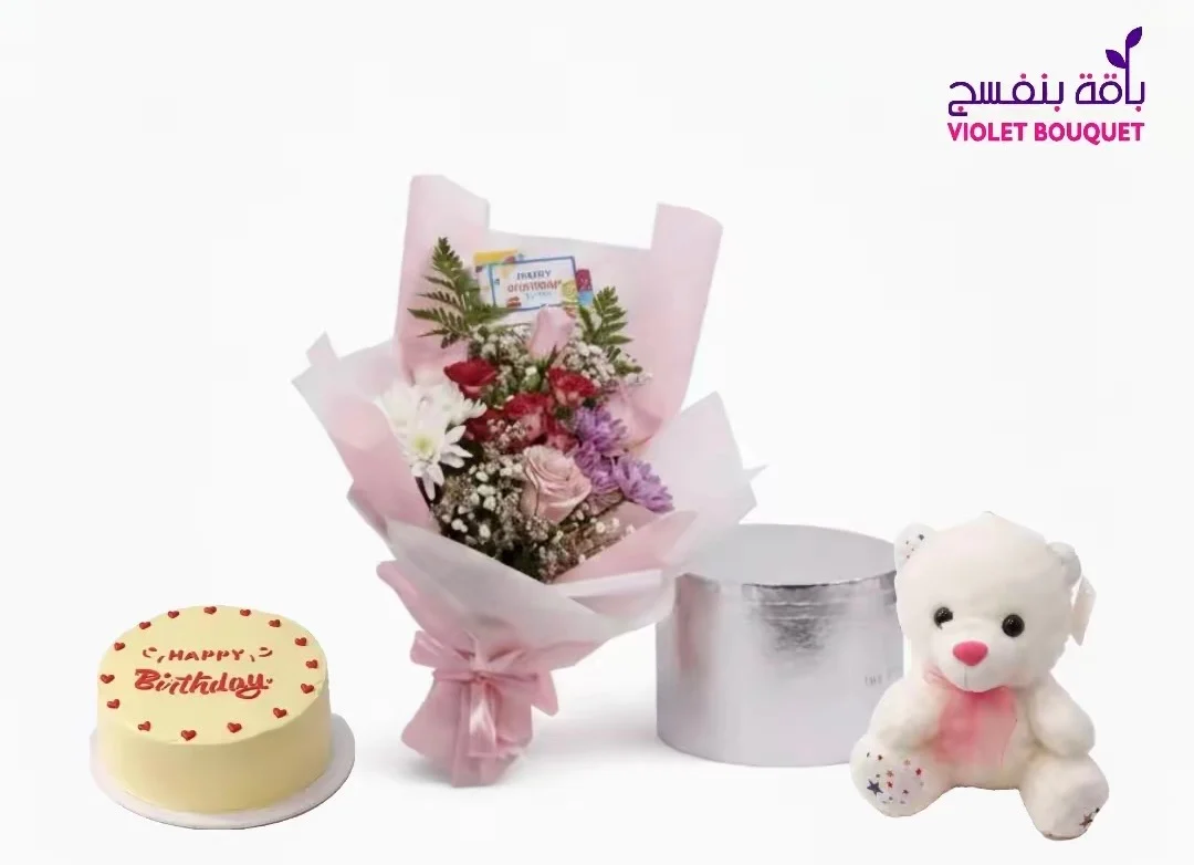 باقة الرومنسية مع كيكة اروى صغيرة