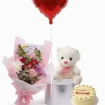 باقة عيد ميلاد متكاملة مع ورد الجوري الاحمر