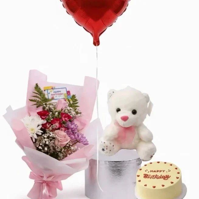 باقة ورد فاخرة مع كيكة أني وداني الصغيرة المميزةالهدية الأمثل لمن تحب في كل المناسبات.
