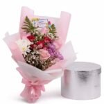 فرحة عيد الميلاد – باقة ورد وردية ناعمة بلمسة احتفالية مبهجة