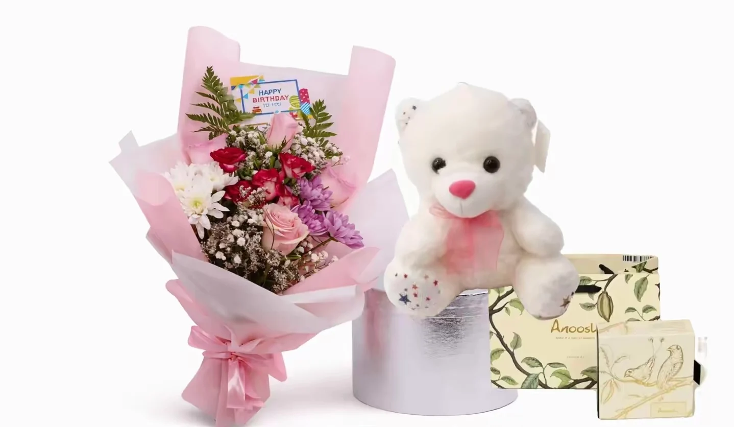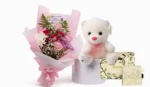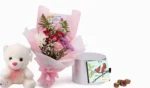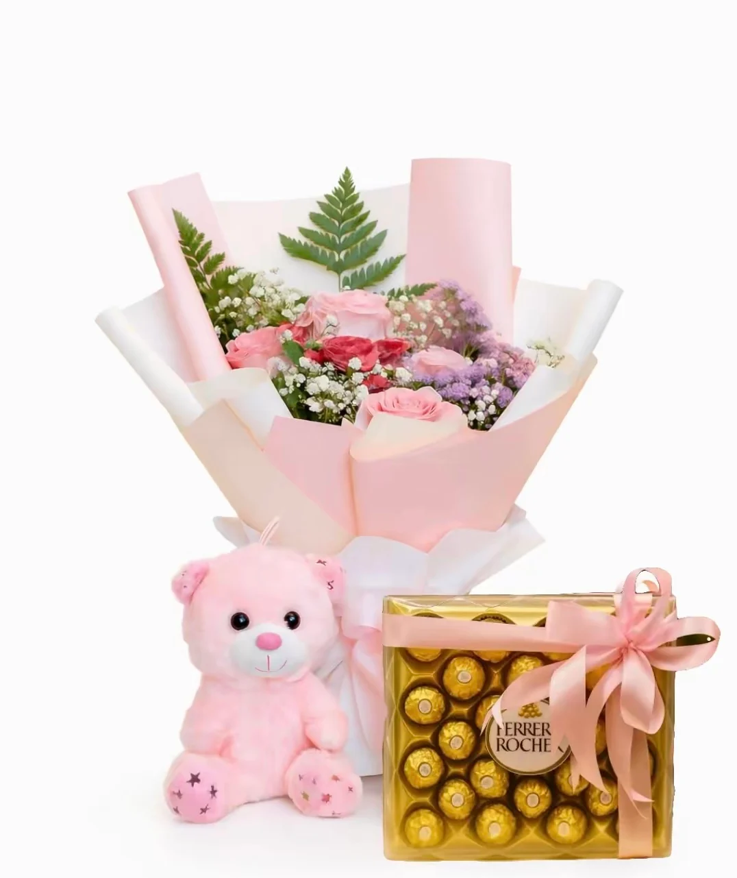 باقة ورد ملونة: مزيج ساحر من الورود المتنوعة، يحمل كل منها رسالة من البهجة والحب،تكملها شوكلاتة الفاخرة مصممة بعناية فائقة لتليق بجمال المناسبة.
