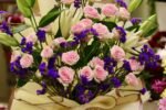 باقة أكاليل الورد – باقة ورد طبيعي وردي مع أقحوان أبيض