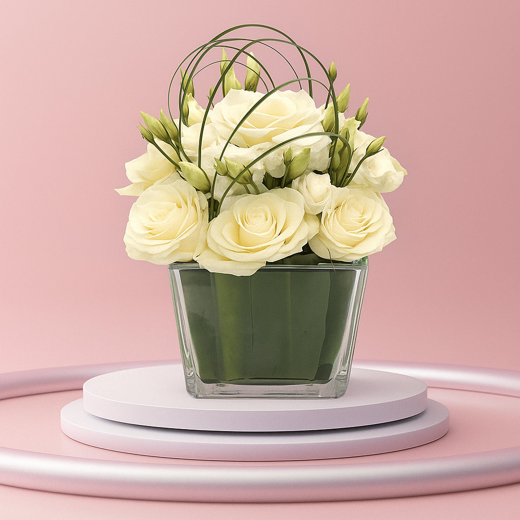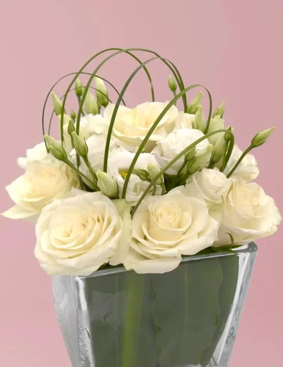 مزهرية ورد أبيض