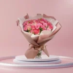 باقة أكاليل الورد – باقة ورد طبيعي وردي مع أقحوان أبيض